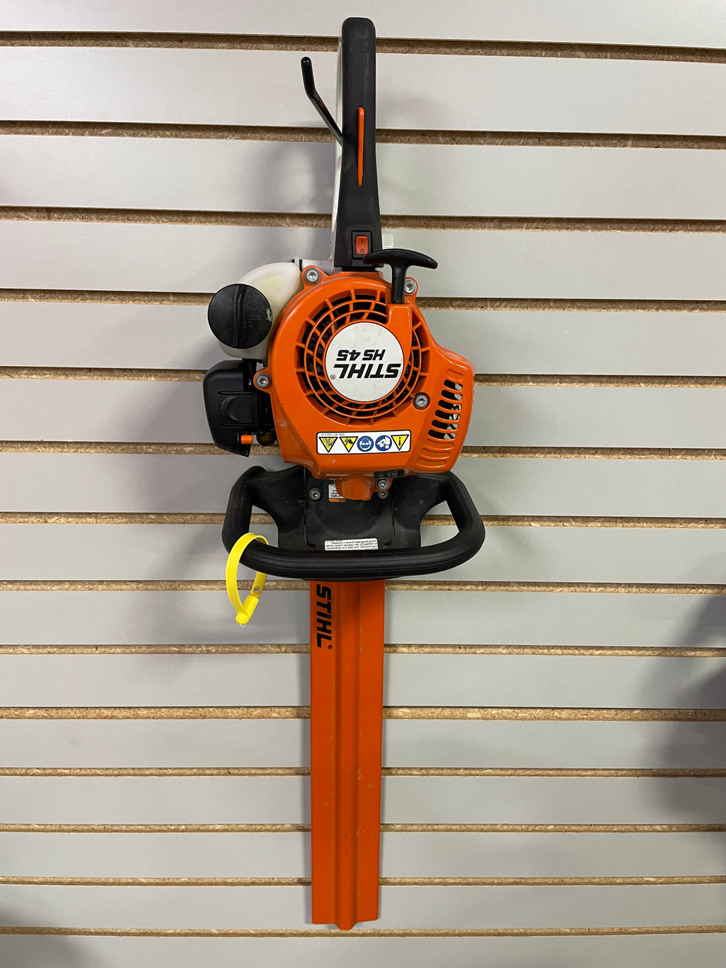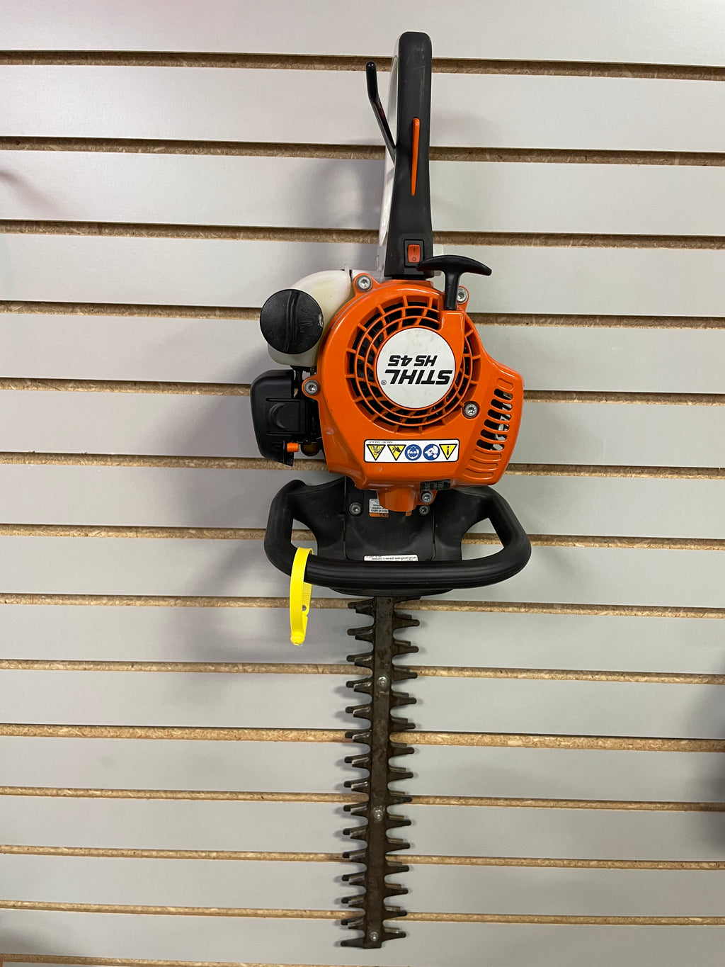 This STIHL HS 45 gas hedge trimmer is a great choice for homeowners looking to keep shrubs and hedges neat with minimal effort. Its lightweight, ergonomic design makes it easy to handle around your yard, while the 18″ double-sided blades deliver a clean, precise cut through thicker branches with less frustration than many battery models. The built-in anti-vibration system reduces fatigue so trimming long hedges feels easier and more comfortable. [8383]