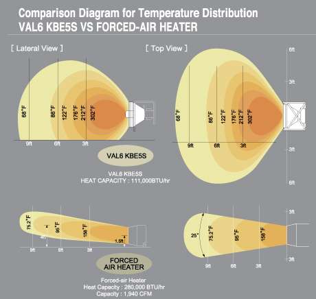 Best choice for outdoors – VAL6 is not affected by wind, unlike forced air heaters that suffer from heat loss in the ambient air